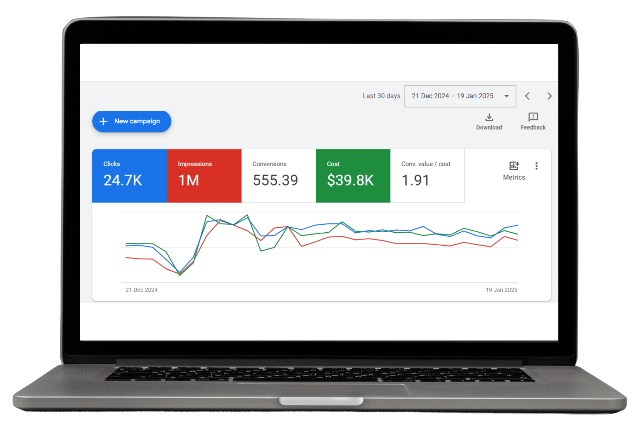 Every campaign is built with conversion tracking from day one. We run Google Tag Manager and GA4 on every account, so every form submission, phone call, and purchase is tracked back to the exact campaign that drove it. No reports full of impressions. No vanity metrics.